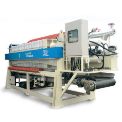 利用蒸氣或熱水在濾板內加熱使濾餅中所含無法壓榨之水分氣化,同時利用真空泵浦將汽化之水氣及含在汙泥餅中的自由水完全抽取,經熱交換器使還原成水排放。在此同時,必須使濾室內保持負壓狀態達到-500mm/Hg(此時水的相對沸點約在70℃),待泥餅中的水分氣化並完全脫離泥餅時,壓濾機濾板自動開啟,幹燥汙泥餅即掉落輸送帶裝入太空包或原料/汙泥鬥,其程式100%全自動控製。